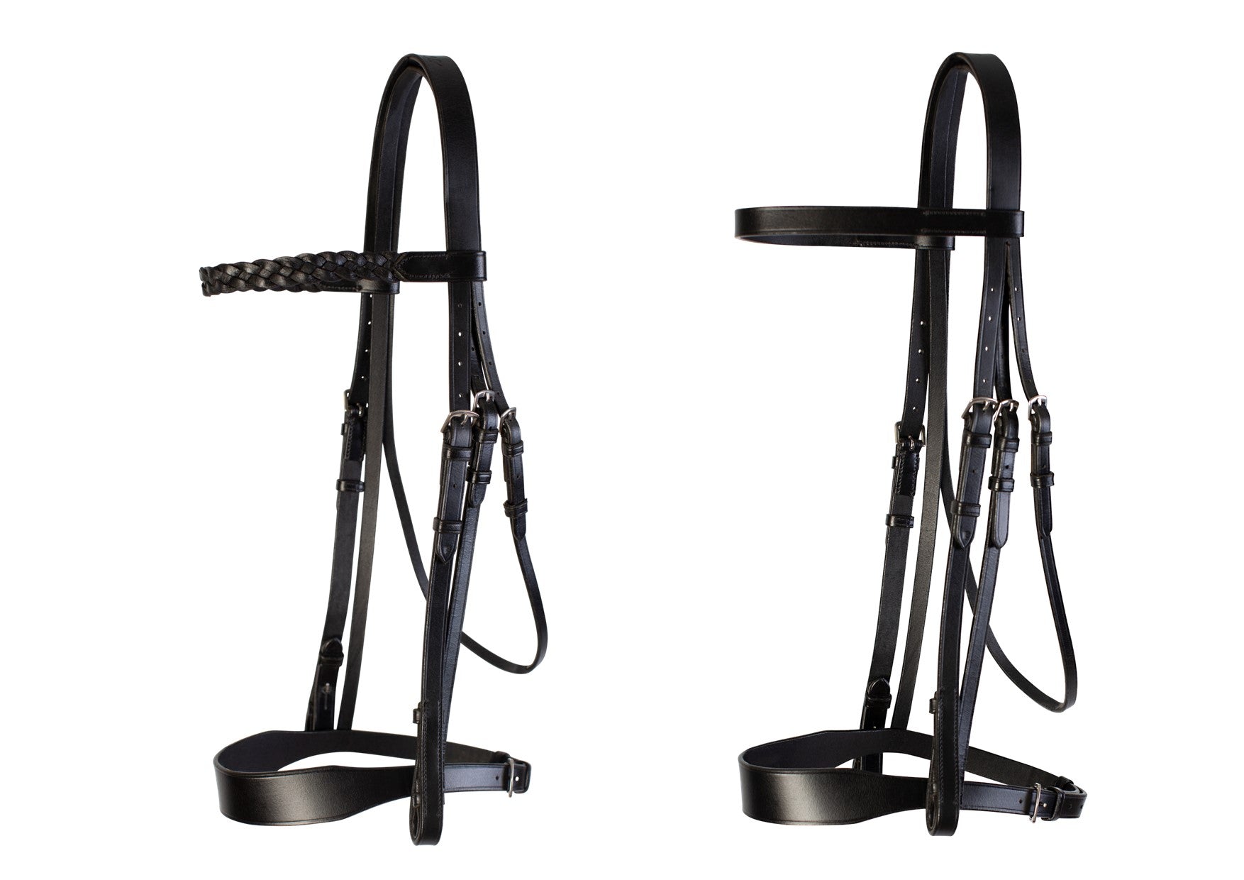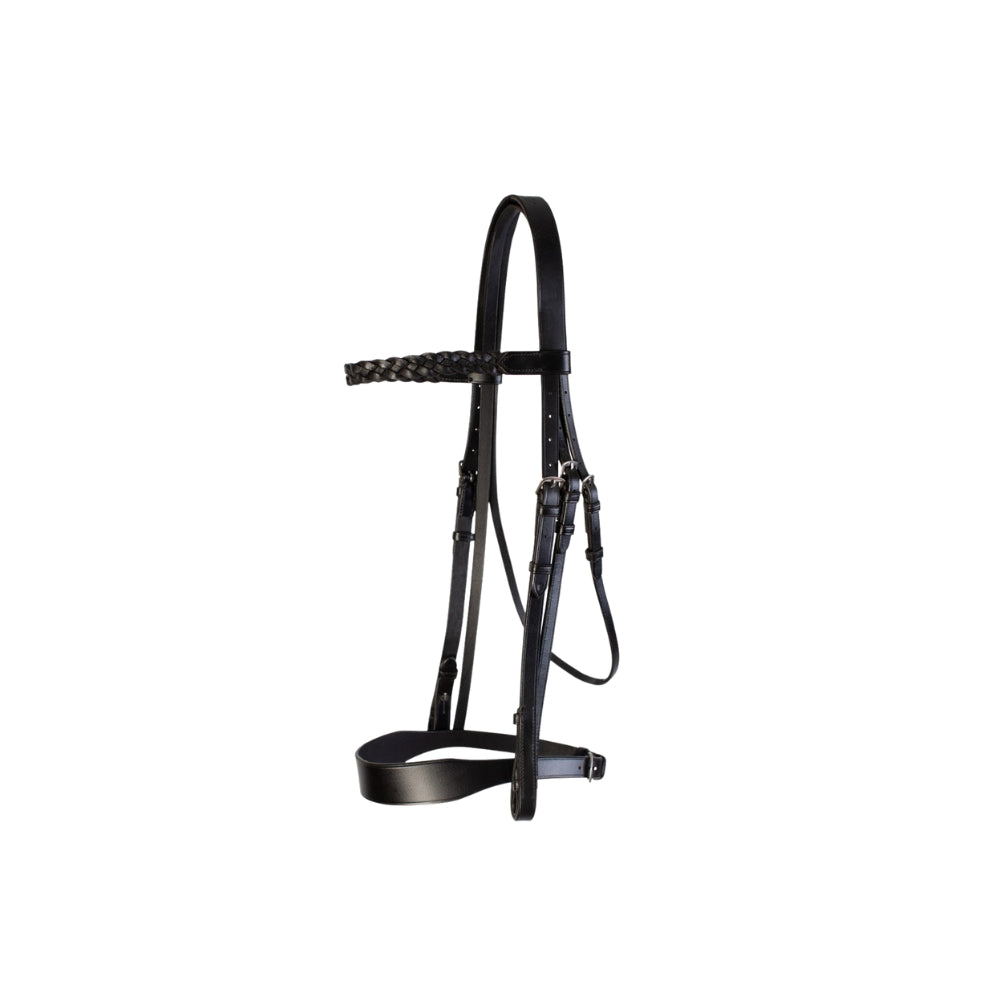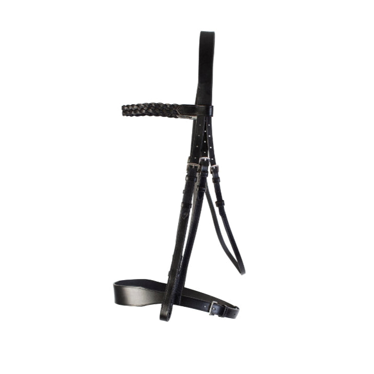 The Cameo Hunt Bridle is made to a traditional design with a broad noseband. The bridle comes with 2 browbands for added versatility, a plain and a plaited version. This bridle is suitable for general use, hunting and showing. This hunt bridle has a traditional elegance and is strong and durable. It comes complete with cheek pieces made with hooked stud billets.