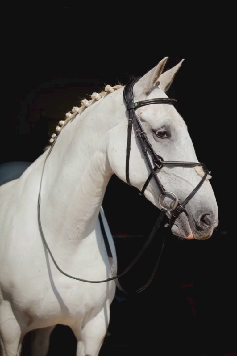 The beautifully soft shaped brow band with stitched detail to match the noseband.